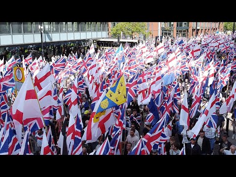 數以千計英國愛國者在曼徹斯特遊行